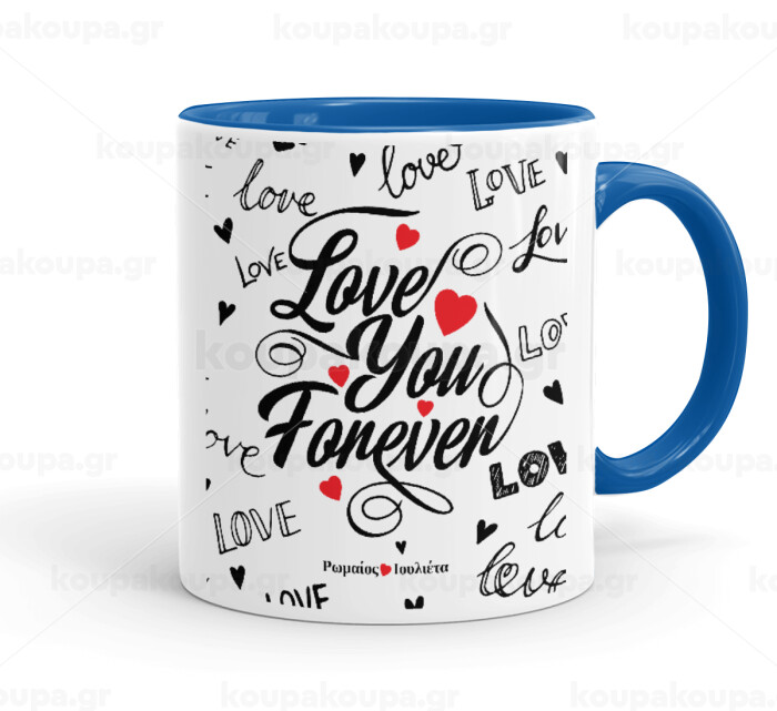 Love You Forever, Κούπα χρωματιστή μπλε, κεραμική, 330ml