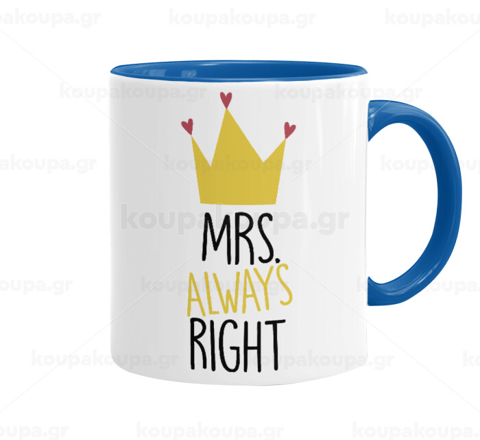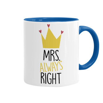 Mrs "Always" right, Κούπα χρωματιστή μπλε, κεραμική, 330ml
