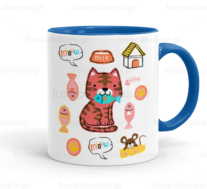 Cats and Fishes, Κούπα χρωματιστή μπλε, κεραμική, 330ml