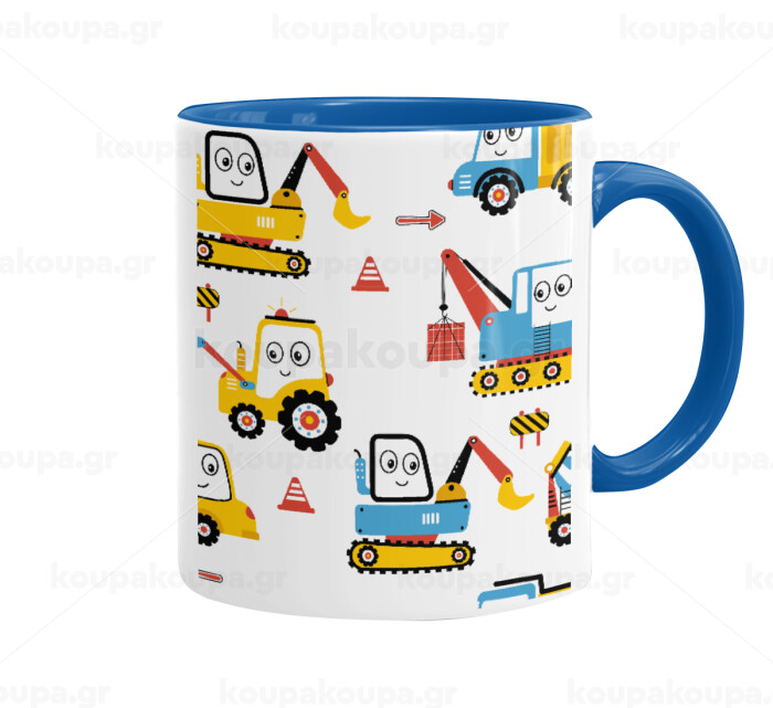Hand drawing building truck, Κούπα χρωματιστή μπλε, κεραμική, 330ml