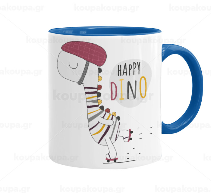 Happy Dino, Κούπα χρωματιστή μπλε, κεραμική, 330ml