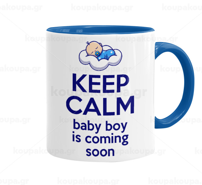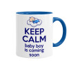 KEEP CALM baby boy is coming soon!!!, Κούπα χρωματιστή μπλε, κεραμική, 330ml