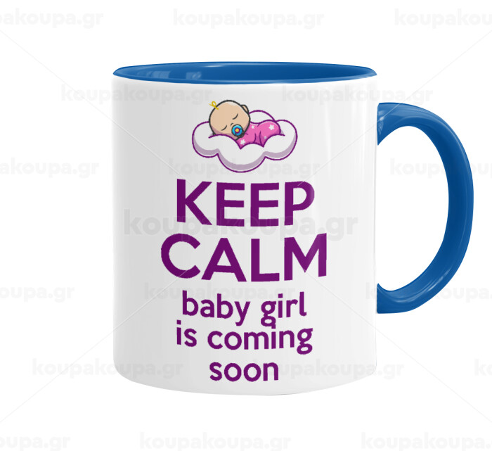 KEEP CALM baby girl is coming soon!!!, Κούπα χρωματιστή μπλε, κεραμική, 330ml