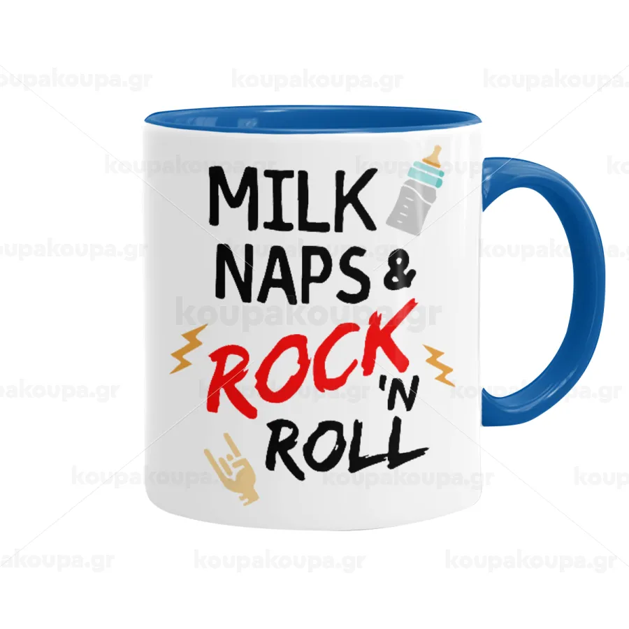 milk naps and Rock n' Roll, Κούπα χρωματιστή μπλε, κεραμική, 330ml