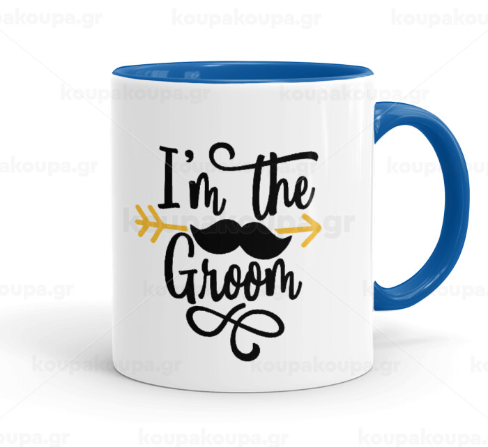 I'm the groom mustache, Κούπα χρωματιστή μπλε, κεραμική, 330ml