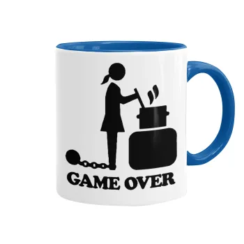Woman Game Over, Κούπα χρωματιστή μπλε, κεραμική, 330ml