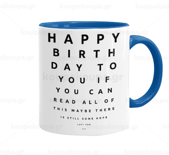 EYE tester happy birthday., Κούπα χρωματιστή μπλε, κεραμική, 330ml