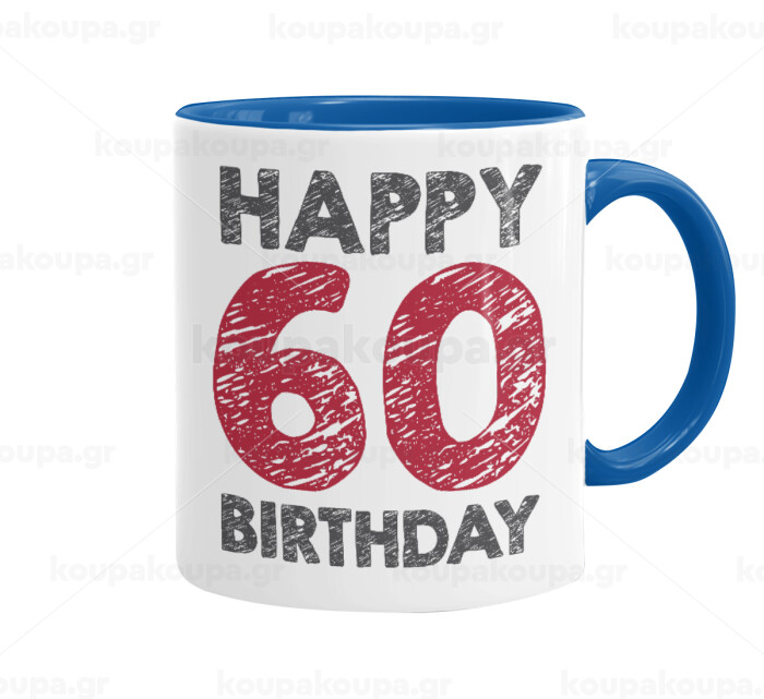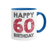 Happy 60 birthday!!!, Κούπα χρωματιστή μπλε, κεραμική, 330ml