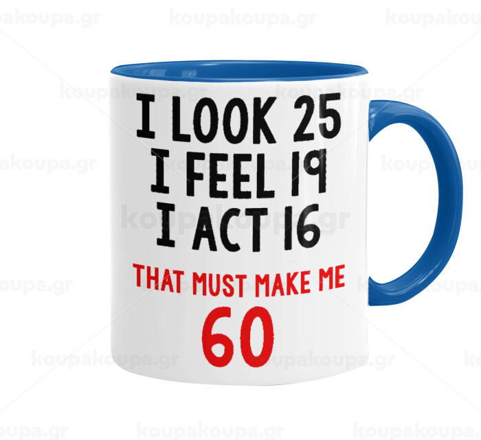 I look, i feel, i act..., Κούπα χρωματιστή μπλε, κεραμική, 330ml