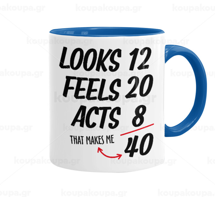 Looks, feels, acts LIKE your AGE, Κούπα χρωματιστή μπλε, κεραμική, 330ml