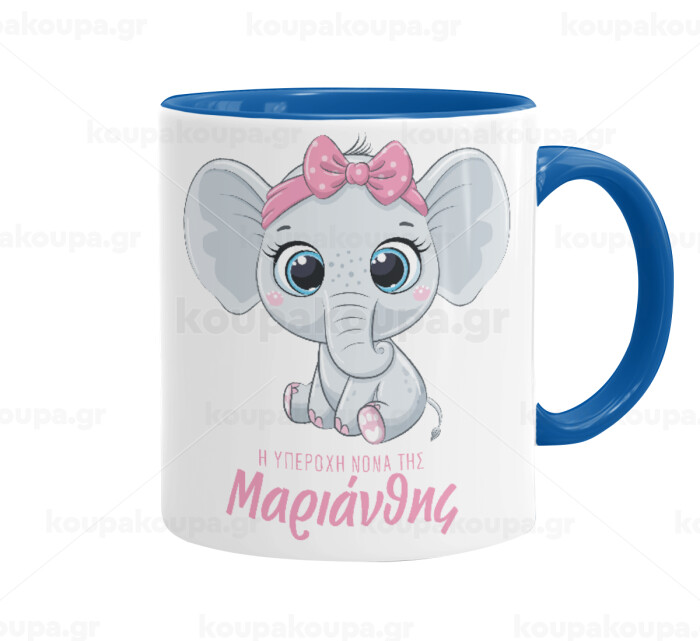 Η νονά μου, ελεφαντάκι ροζ, Κούπα χρωματιστή μπλε, κεραμική, 330ml