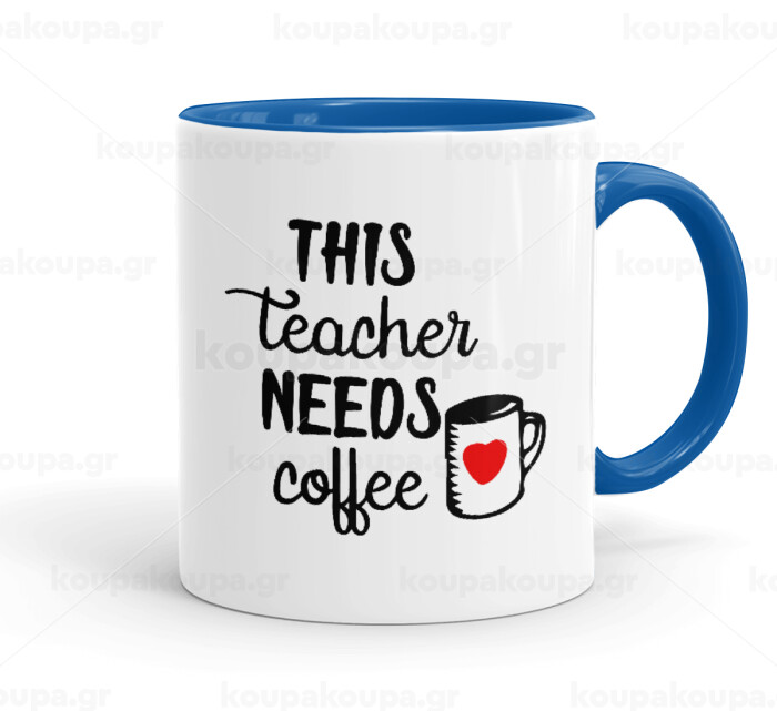 Τhis teacher needs coffee, Κούπα χρωματιστή μπλε, κεραμική, 330ml