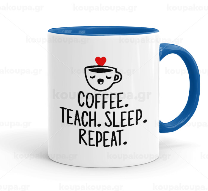 Coffee Teach Sleep Repeat, Κούπα χρωματιστή μπλε, κεραμική, 330ml