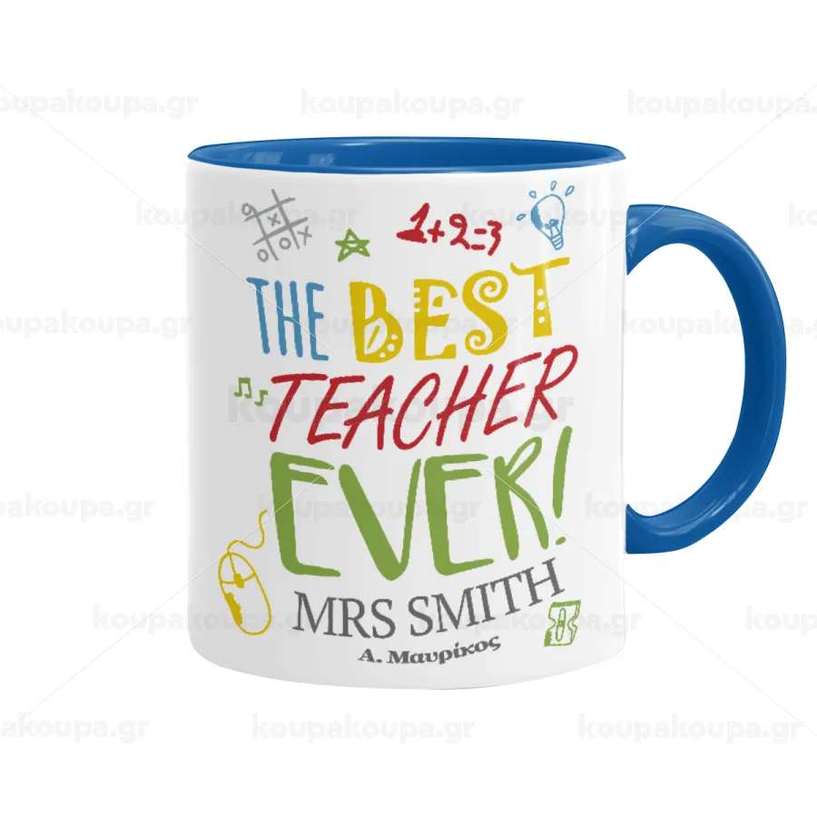 The best teacher ever!, Κούπα χρωματιστή μπλε, κεραμική, 330ml