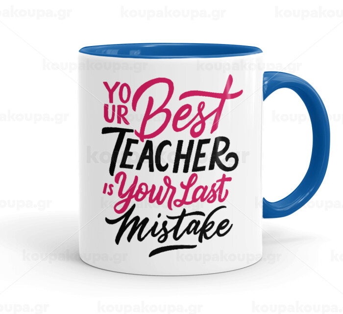 Typography quotes your best teacher is your last mistake, Κούπα χρωματιστή μπλε, κεραμική, 330ml