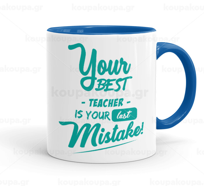 Your best teacher is your last mistake, Κούπα χρωματιστή μπλε, κεραμική, 330ml