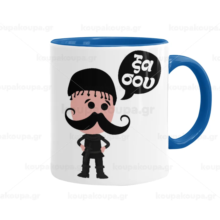 Κρητικός "Ξα σου", Κούπα χρωματιστή μπλε, κεραμική, 330ml