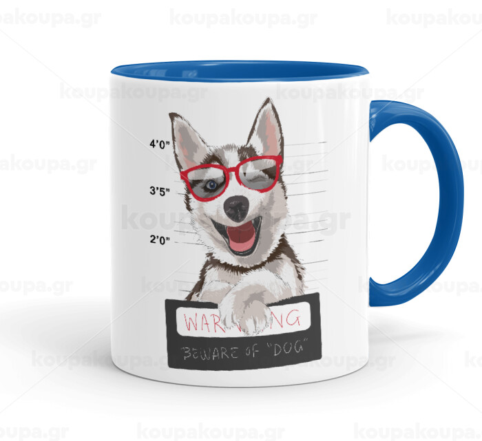 Warning, beware of Dog, Κούπα χρωματιστή μπλε, κεραμική, 330ml