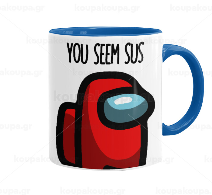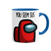 Among US, you seem sus, Κούπα χρωματιστή μπλε, κεραμική, 330ml