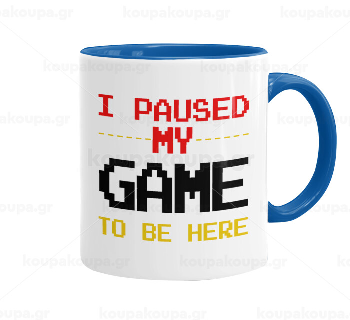 I paused my game to be here, Κούπα χρωματιστή μπλε, κεραμική, 330ml