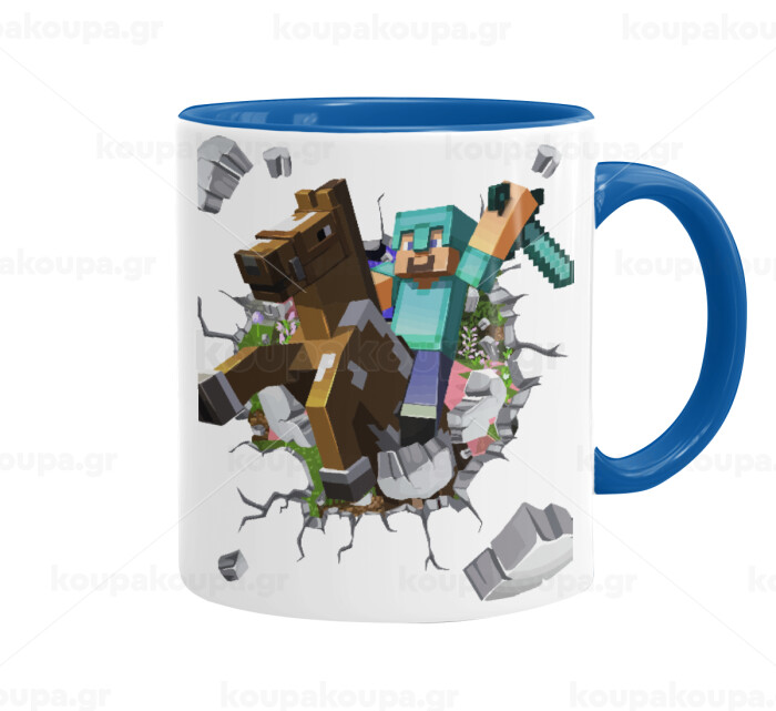 Minecraft brick, Κούπα χρωματιστή μπλε, κεραμική, 330ml