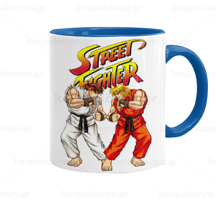 Street fighter, Κούπα χρωματιστή μπλε, κεραμική, 330ml