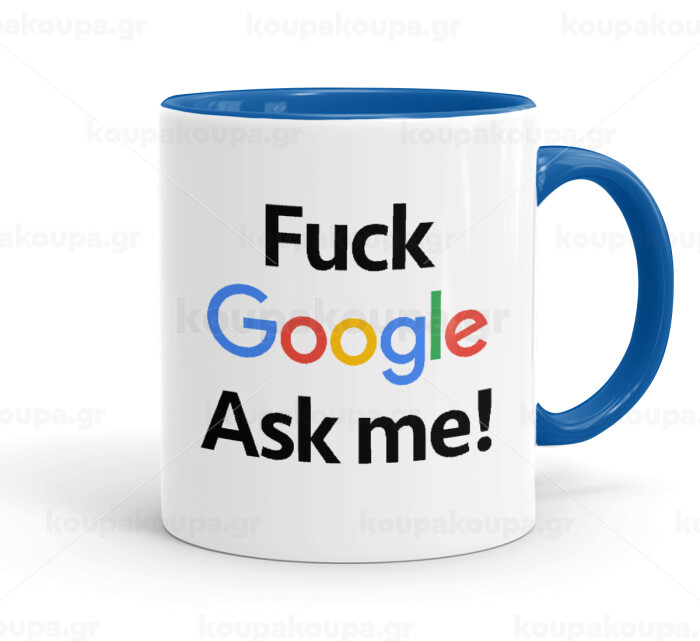 Fuck Google, Ask me!, Κούπα χρωματιστή μπλε, κεραμική, 330ml