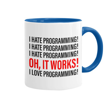 I hate programming!!!, Κούπα χρωματιστή μπλε, κεραμική, 330ml