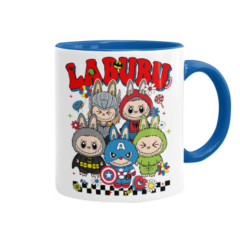 Labubu superheroes, Κούπα χρωματιστή μπλε, κεραμική, 330ml