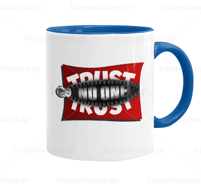 Trust no one... (zipper), Κούπα χρωματιστή μπλε, κεραμική, 330ml
