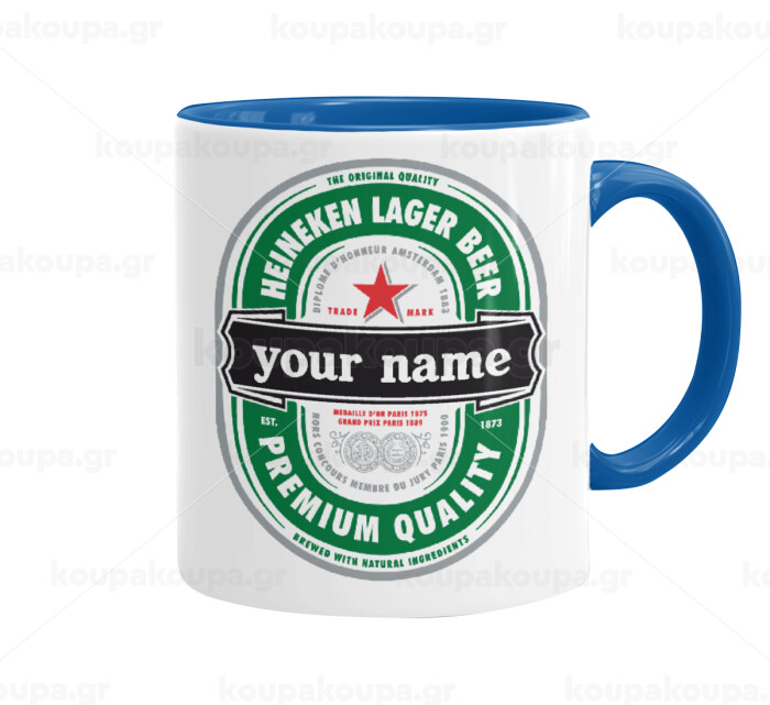 Heineken με όνομα, Κούπα χρωματιστή μπλε, κεραμική, 330ml