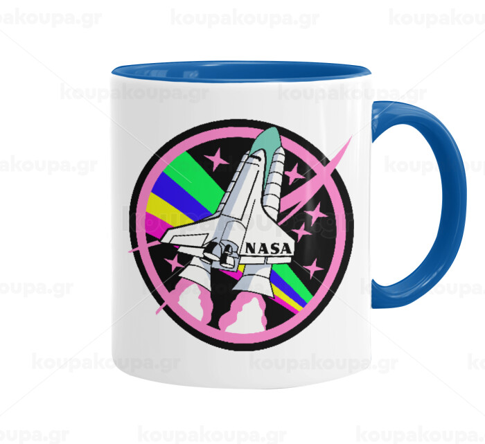 NASA pink, Κούπα χρωματιστή μπλε, κεραμική, 330ml