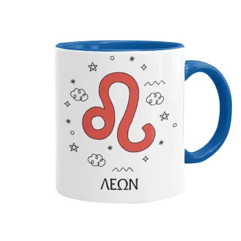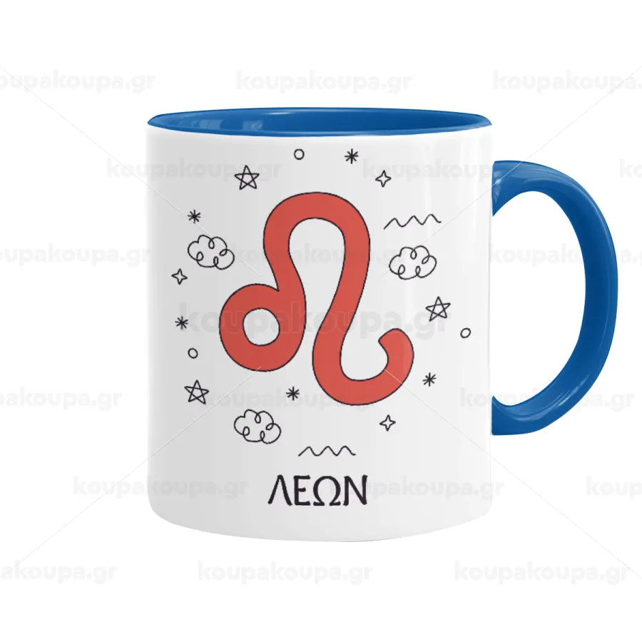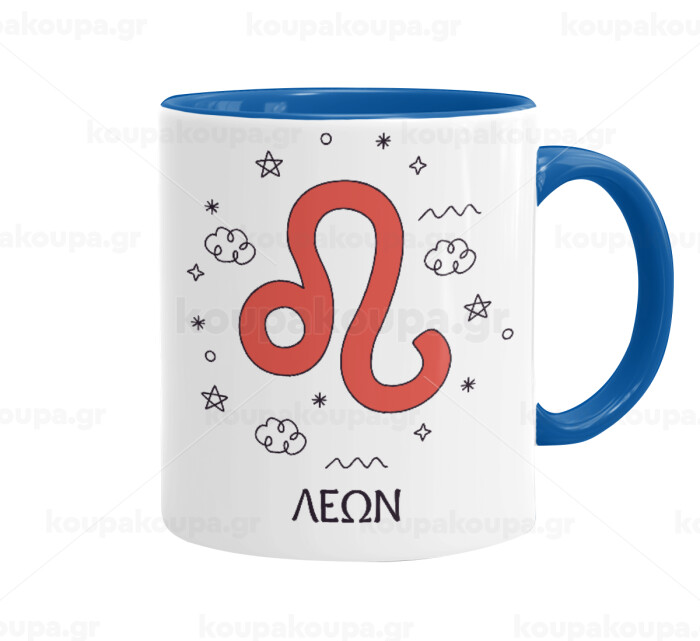 Ζώδια Λέων, Κούπα χρωματιστή μπλε, κεραμική, 330ml