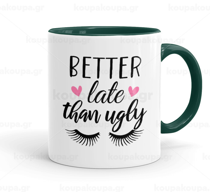 Better Late than ugly hearts, Κούπα χρωματιστή πράσινη, κεραμική, 330ml