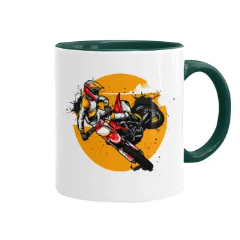 Motocross, Κούπα χρωματιστή πράσινη, κεραμική, 330ml