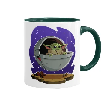 Baby Yoda mandalorian, Κούπα χρωματιστή πράσινη, κεραμική, 330ml
