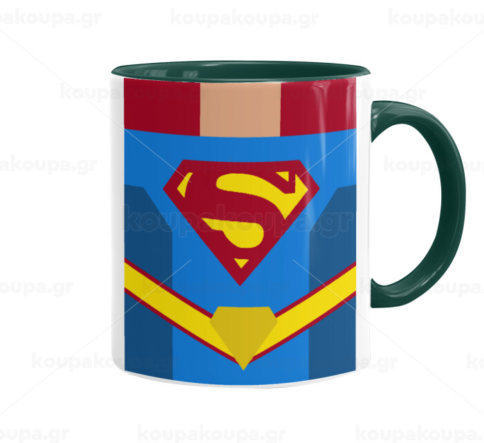 Superman flat, Κούπα χρωματιστή πράσινη, κεραμική, 330ml