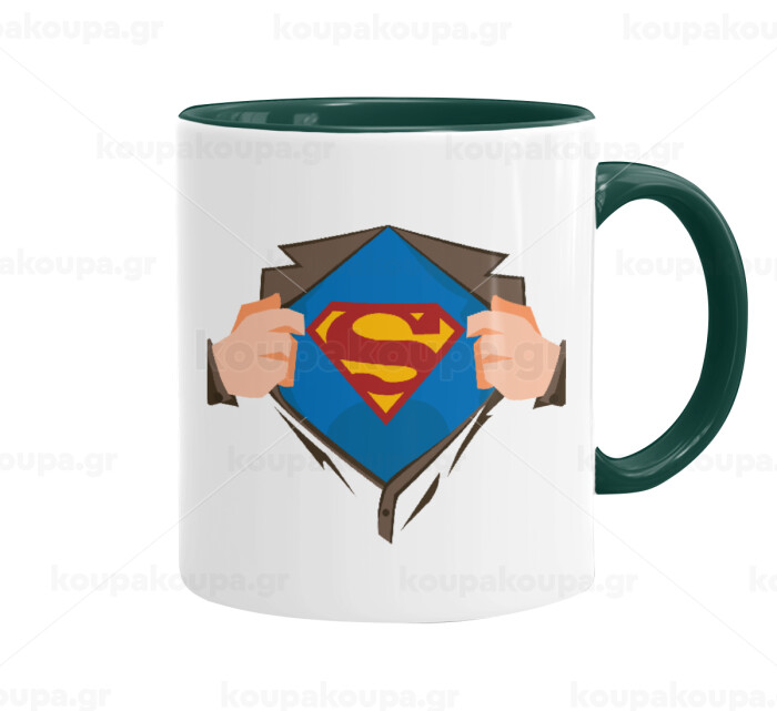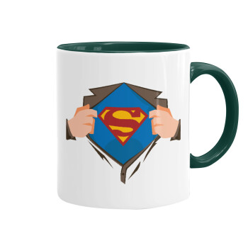 Superman hands, Κούπα χρωματιστή πράσινη, κεραμική, 330ml