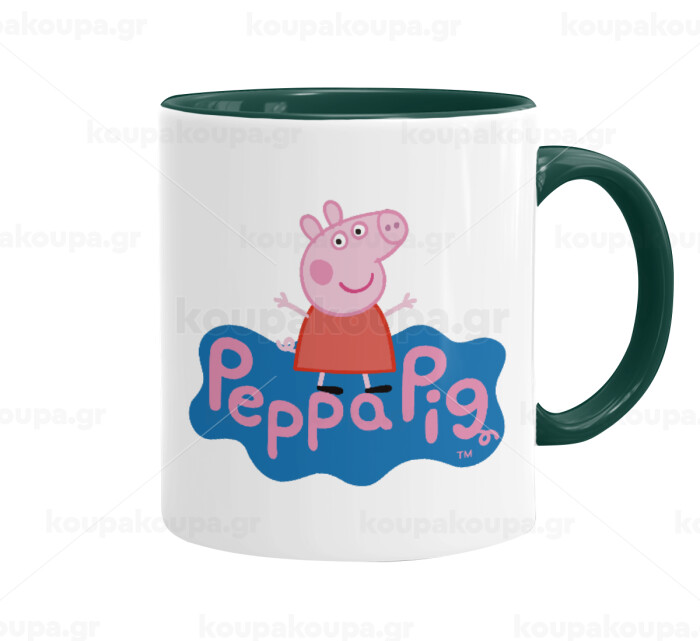 Πέππα το γουρουνάκι μπλε με όνομα, Κούπα χρωματιστή πράσινη, κεραμική, 330ml