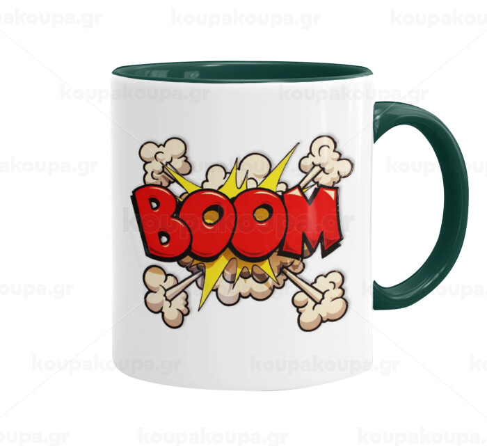 BOOM!!!, Κούπα χρωματιστή πράσινη, κεραμική, 330ml