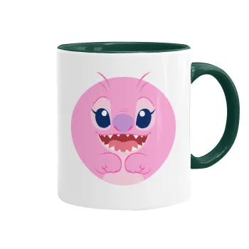 Lilo & Stitch Angel pink, Κούπα χρωματιστή πράσινη, κεραμική, 330ml