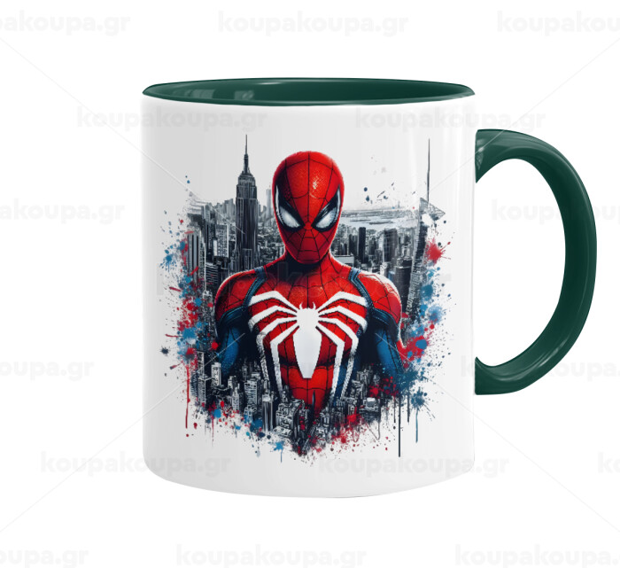 Spiderman City, Κούπα χρωματιστή πράσινη, κεραμική, 330ml