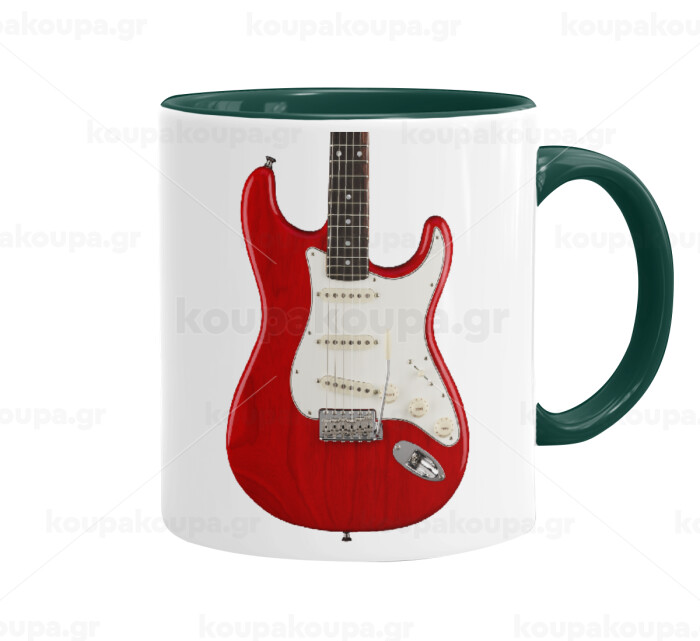 Guitar stratocaster, Κούπα χρωματιστή πράσινη, κεραμική, 330ml