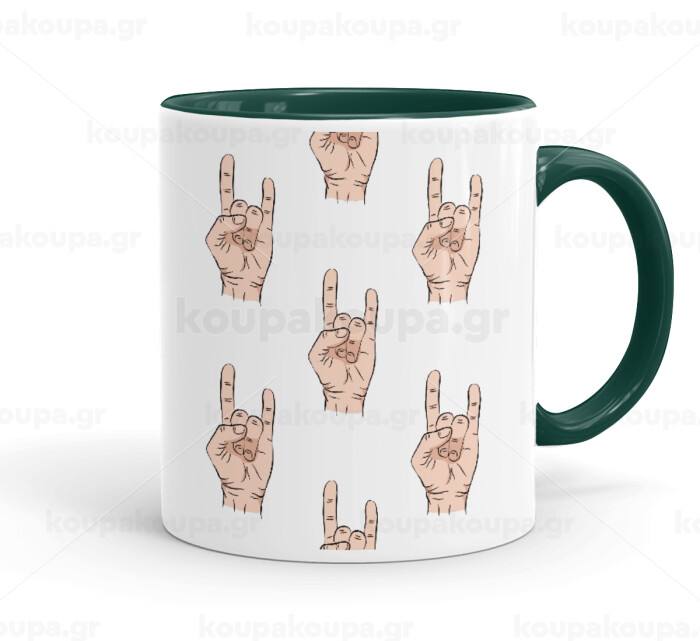 Rock hands, Κούπα χρωματιστή πράσινη, κεραμική, 330ml
