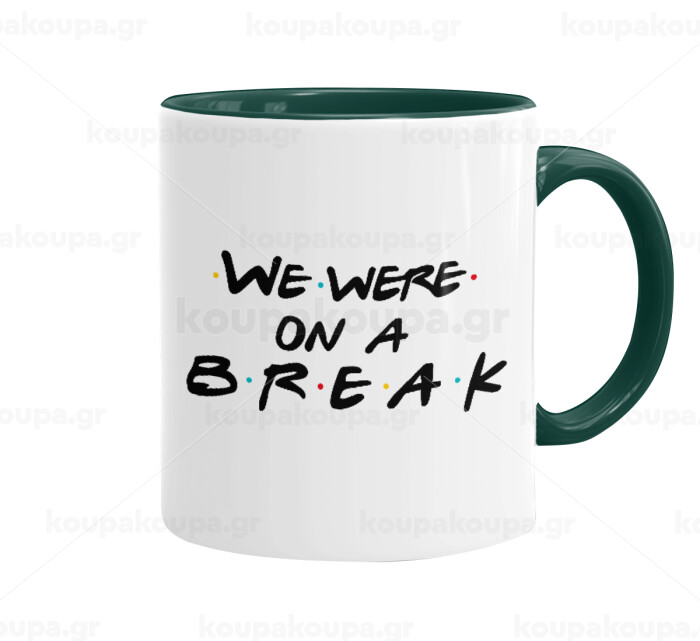 Friends we were on a break, Κούπα χρωματιστή πράσινη, κεραμική, 330ml