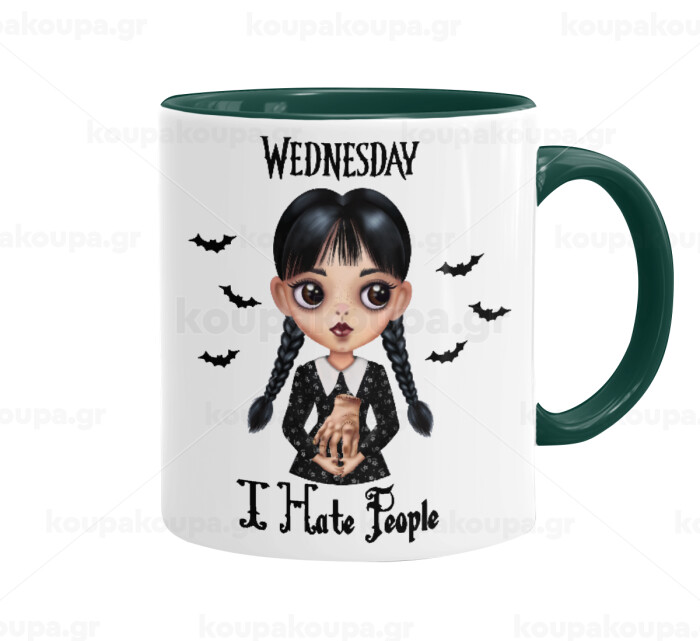 Wednesday Adams, i hate people, Κούπα χρωματιστή πράσινη, κεραμική, 330ml