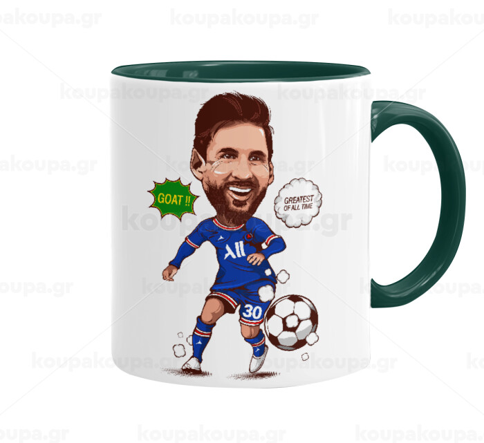 Lionel Messi drawing, Κούπα χρωματιστή πράσινη, κεραμική, 330ml
