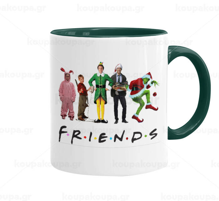 Christmas FRIENDS, Κούπα χρωματιστή πράσινη, κεραμική, 330ml