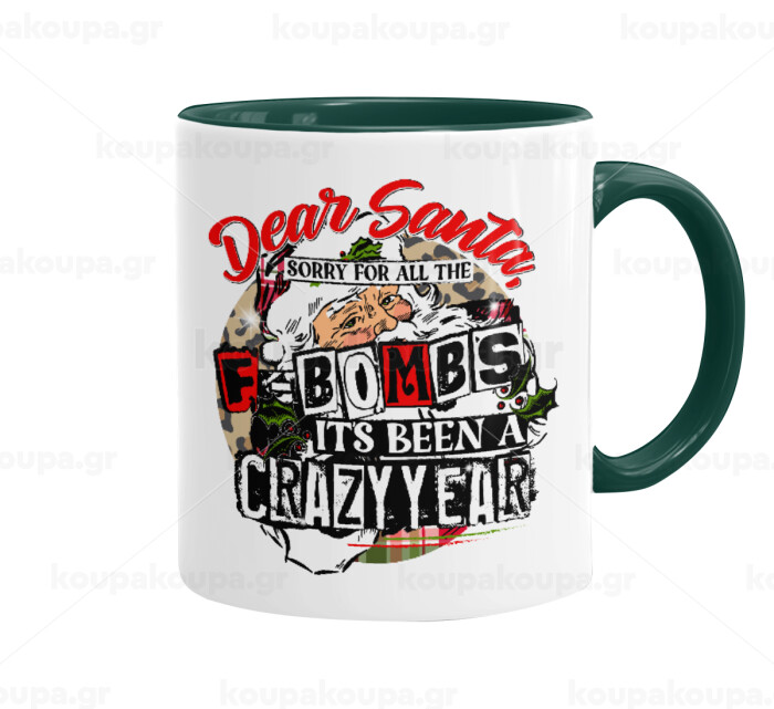 Dear Santa, sorry for all the F-bombs, Κούπα χρωματιστή πράσινη, κεραμική, 330ml