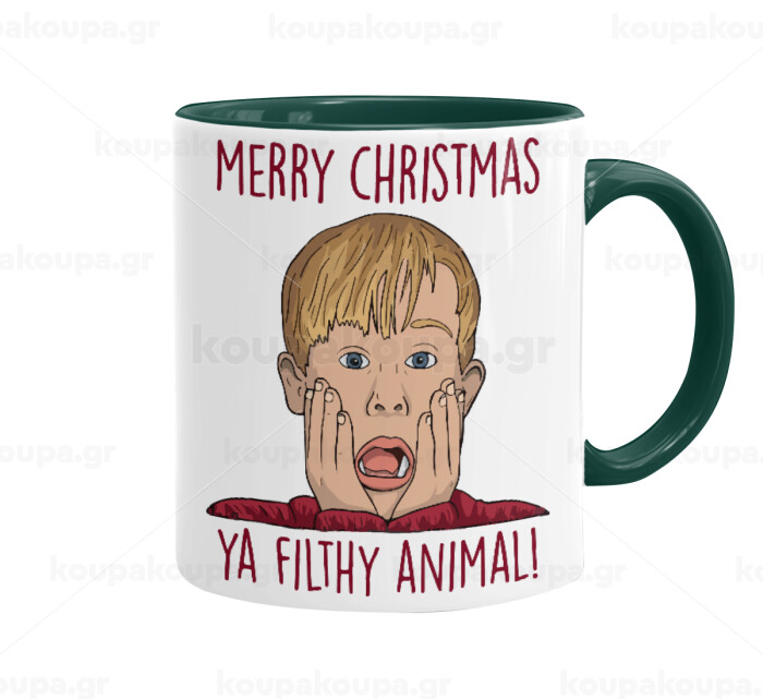 home alone, Merry Christmas ya filthy animal, Κούπα χρωματιστή πράσινη, κεραμική, 330ml